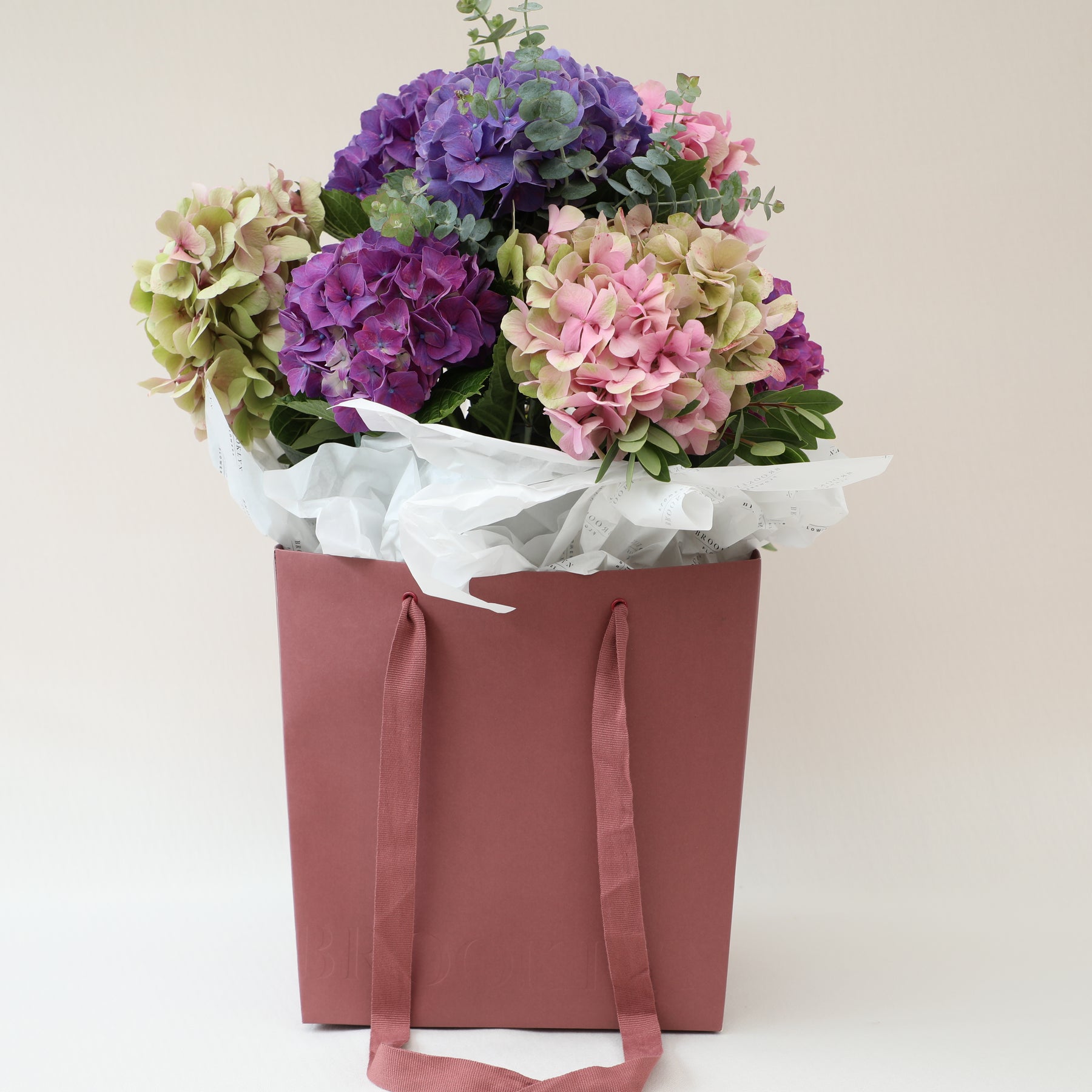 Introducing a fresh addition to Brooklyn Flowers this hydrangea season our stunning Bliss Bag featuring beautiful NZ-grown hydrangeas. This arrangement showcases 7 premium stems, arranged in water to ensure maximum freshness and longevity. Hydrangea colours may change & evolve naturally throughout the season, This product is Perfect for adding elegance to any space.