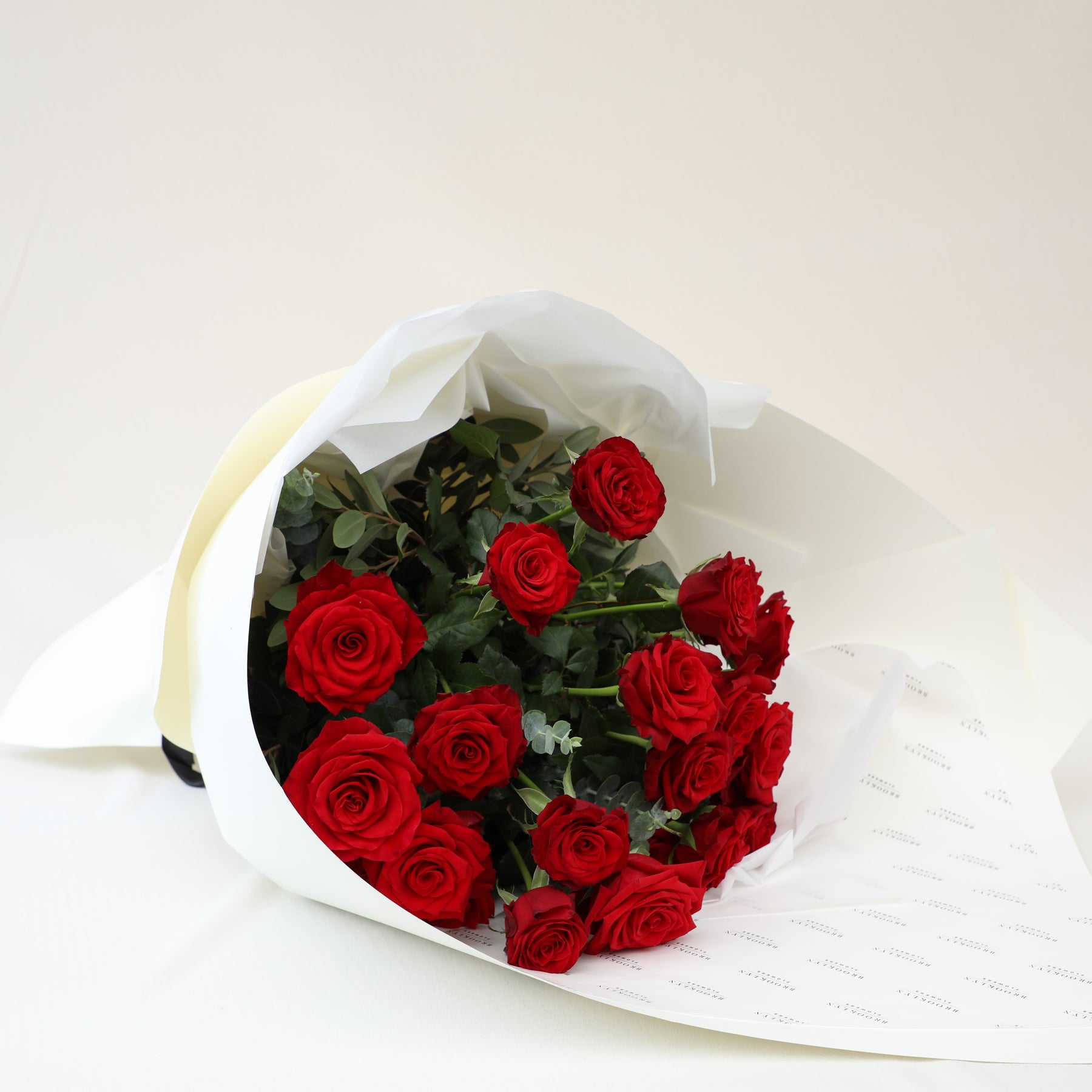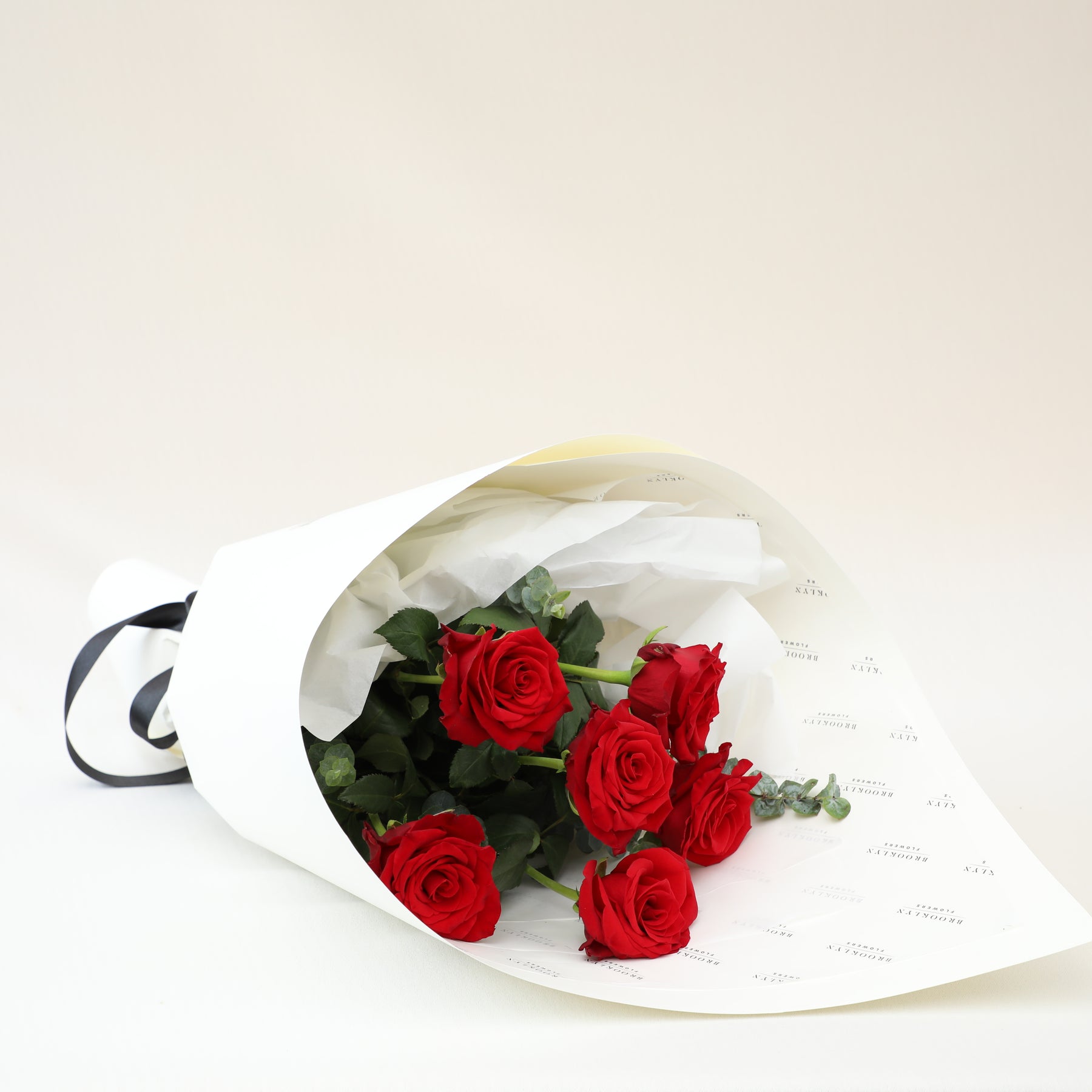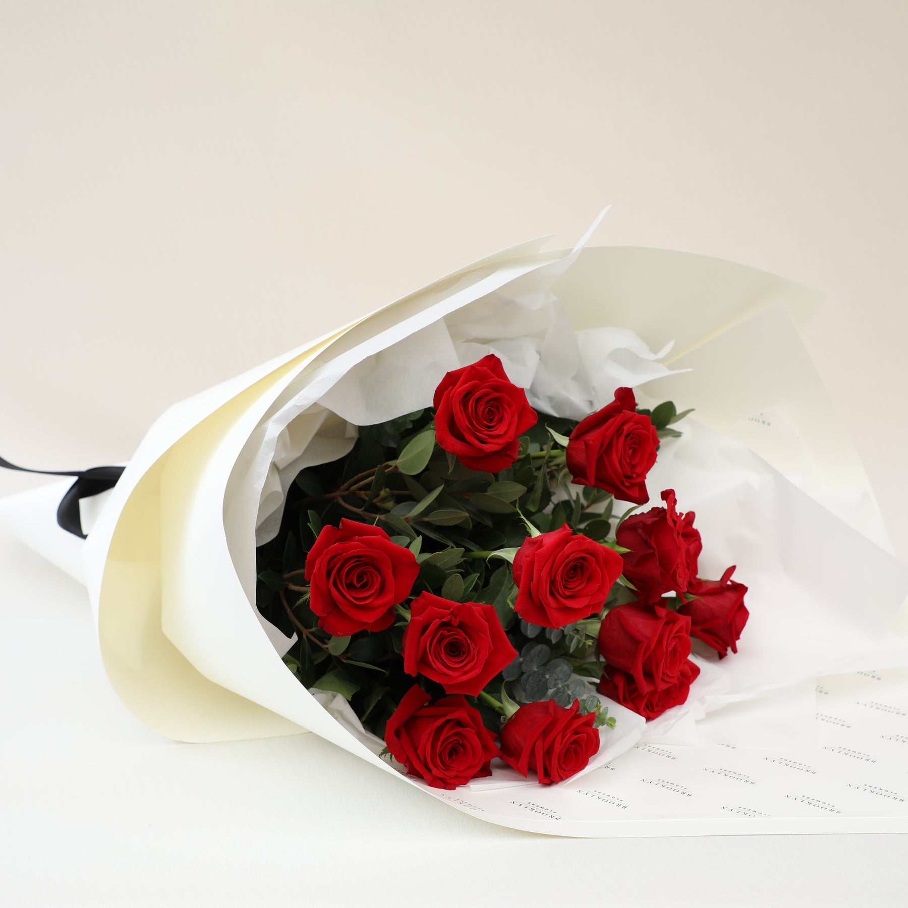 Presenting a stunning bouquet of premium red roses, elegantly arranged with lush foliage and wrapped in our signature Brooklyn Wrap.